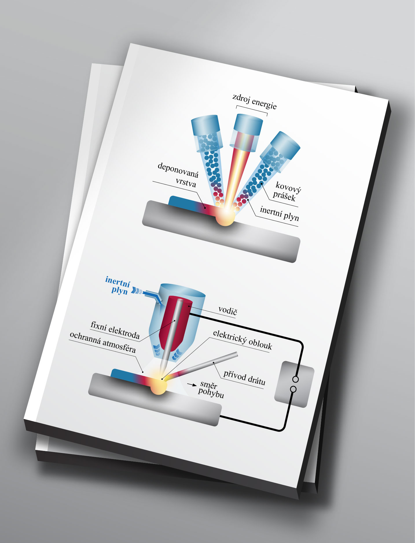 schéma procesu 3D tisku kovových materiálů metodami DED a TIG