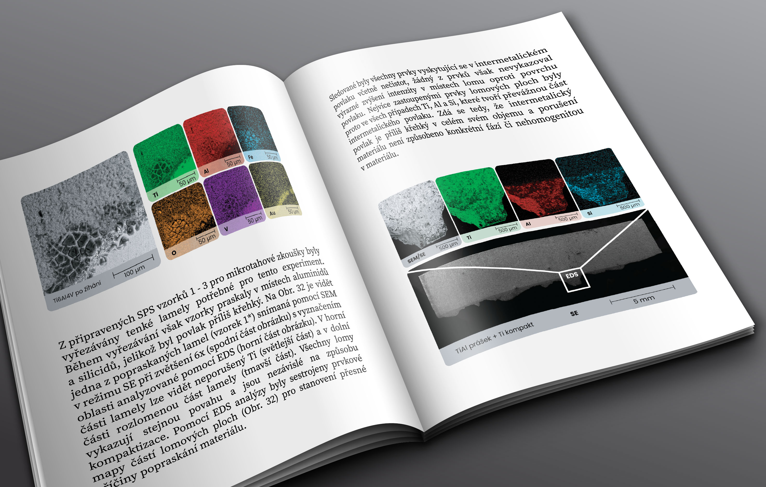 vizualizace EDS analýzy kovového materiálu doplněná o textovou interpretaci