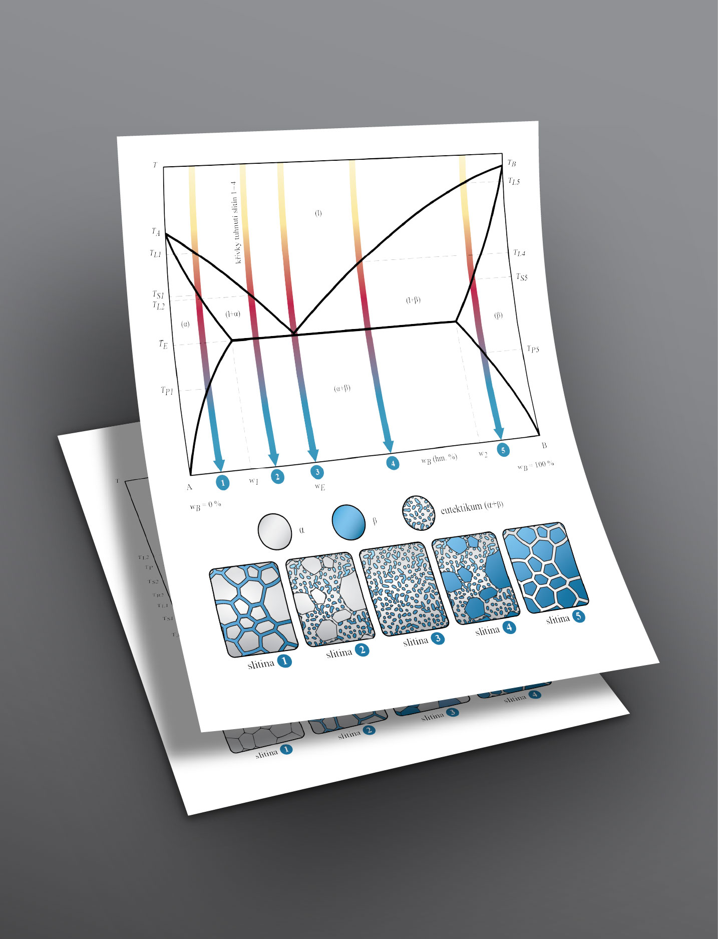 binární diagram vývoje mikrostruktury v závislosti na změně teploty a složení